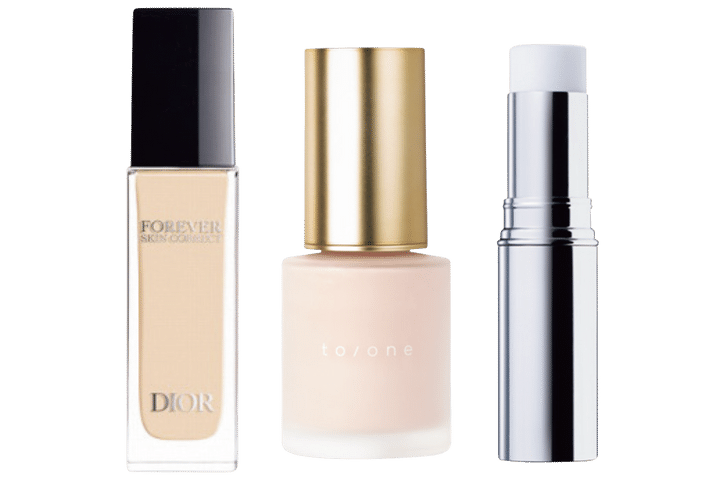 左から:ディオールスキン フォーエヴァー スキン コレクト コンシーラー 1N (本人私物)、ベース ルミネッセンス SPF22・PA++ 30mL ¥3,520(トーン)、ザ・タイムR デイエッセンススティックe 9.2g ¥3,190(イプサ)