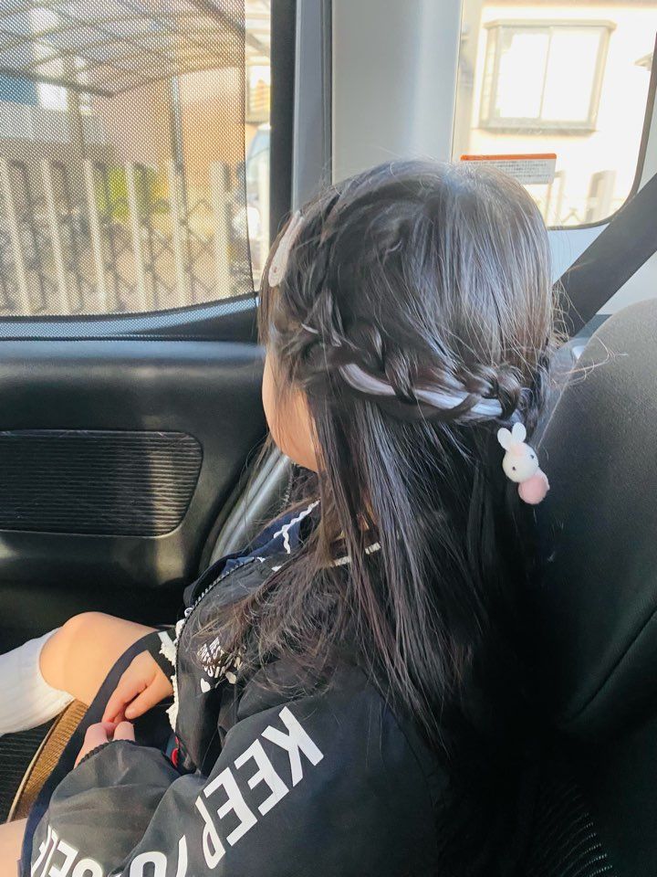 なんか色々練習したのですが、娘の髪の毛がサラサラなのと私の手がカサカサ過ぎてオイルをつけても上手く出来ず(>
