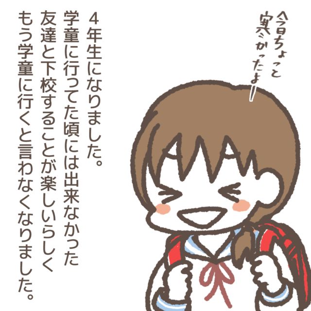 学童に行っていた頃にはできなかった友達との下校が楽しいらしく、学童に行くと言わなくなっていました。