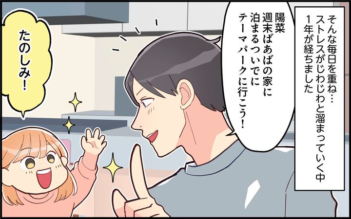 家での態度とのあまりの違いに、どれが本当の夫なのかわからなくなった美和。しかし、これからも夫の態度は変わらないと思う美和は、夫に何も期待せずやり過ごそうと考えていました。そんな毎日を重ねたある日、夫がテーマパークに行こうと言い出して…。