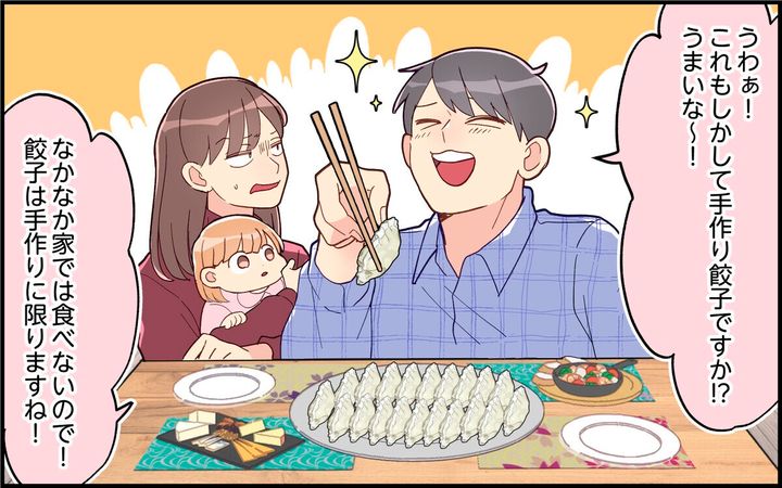 ・手作り餃子の話以外は世の中生きてく上である程度必要だと思うけど。でも、手作り餃子の話で奥さんは「っぁんっ!?」ってスイッチが入ってしまったわけなので致し方ないですよね。