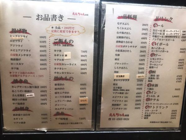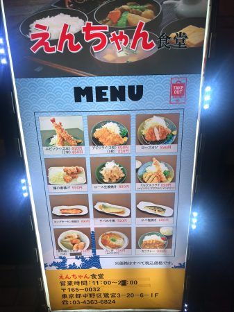 えっちゃん食堂 東京都中野区鷺宮3-20-61F 営業時間:11:00~15:00 17:00~22:00 定休日:なし TEL:03-4363-6824