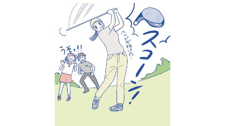 普段ゴルフをあまりしないAちゃん。当然、クラブも古いままなのですが、久しぶりに一緒にラウンドしたら、1番ホールでドライバーのヘッドが外れ、きれいに飛んでいきました…