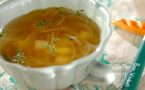 角切りのジャガイモをゴロッと入れるコンソメスープです。仕上げに粉チーズとオリーブ油をプラスすることで、風味豊かな味わいにランクアップ。洋風献立にぴったりです。