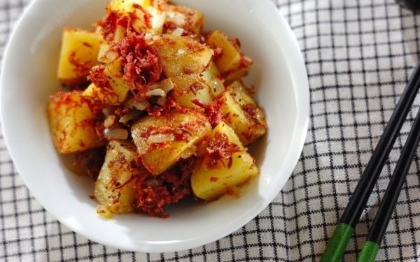 ジャガイモをせん切りにすることで火の通りが早くなります。調味料でサッと煮る程度でOKです。時短になるうえに食べやすく、シャキシャキ歯ごたえを楽しめます。中華風の味つけで、どんな献立にもマッチしますよ。