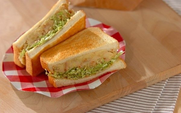 SNSで話題になった“沼サンド”をアレンジしたレシピ。ソースで味つけしたキャベツにポテトサラダを合わせ、まるでコロッケを食べているような味わいです。油で揚げる手間なく、手軽にコロッケ風サンドイッチを堪能できますよ。