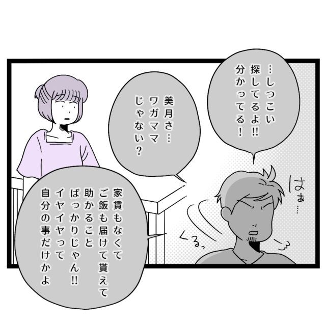 家賃は無く、働いている美月さんに晩御飯を届けてもらえたり助かる事ばかりだというのがタクヤさんの主張です。それなのに嫌だとばかり言っているのは美月さんがワガママなのだと怒っているのです。