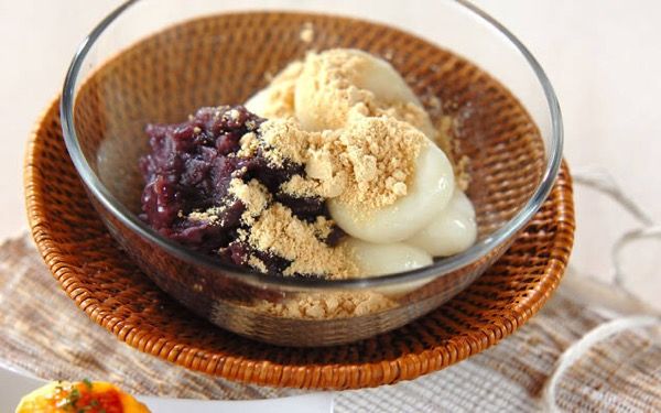 白玉粉にすりこ木ですりつぶしたご飯を混ぜることで、しっかりした弾力のモチモチ食感の団子が作れます。みたらしあんの方は、フライパンでこんがり焼いて香ばしく仕上げます。ずんだあんの緑色が春らしい雰囲気で、お花見にぴったりです。