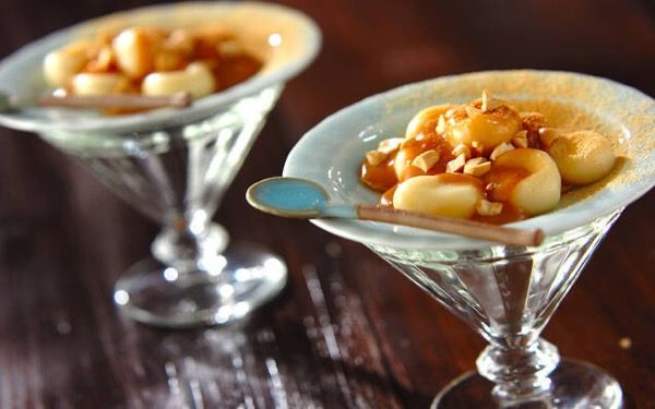 白玉団子は冷やして食べるのが一般的ですが、こちらは寒い日にぴったりの体が温まるスイーツです。ショウガ入りの温かいシロップをかけて食べるゴマあん入りの白玉団子は、少しアジアンな雰囲気が漂います。乾燥ショウガがなければ、生のショウガでも作れます。