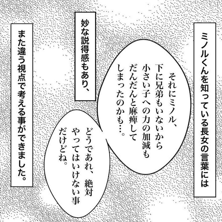 長女の言うように、ミノルくんも最初は息子とふざけ合っているだけで、本当にいじめている自覚はなかったのかもしれません。