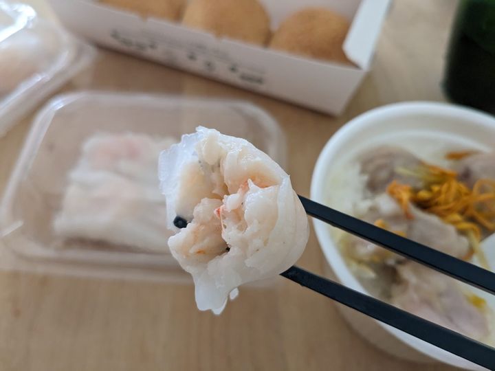 全部おいしかったのですが、特にこの海老の蒸し餃子が♪中にごろっと海老が入っていました。付属のタレもありましたが、これだけでもしっかり味がついていました。