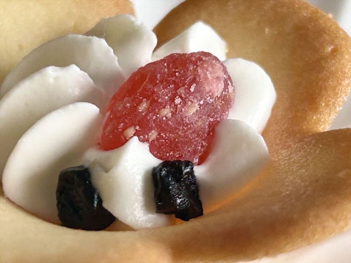 中央のクリームはふわふわと柔らかく、やさしい味わいのラングドシャと調和した、なめらかなくちどけ。ドライストロベリーとドライブルーベリーの甘酸っぱさがアクセントになった、贅沢感のある味わいです。