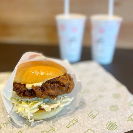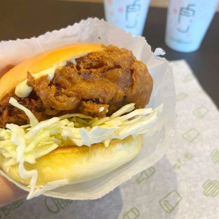 にんにくやしょうが等を使用した特製のしょうゆダレに漬け込んで揚げた鶏のもも肉を使ったジューシーなチキンに、特製の柚子胡椒マヨソース、シュレッドキャベツをトッピング。 注文が入ってから一枚ずつ手作業で衣をつけて揚げているので、外はカリっと、中からは肉汁があふれ出します。