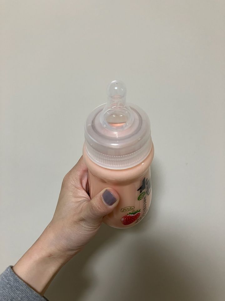 ガラス瓶に飲み口は哺乳瓶のような形!?見た目に惹かれ、購入してまたした