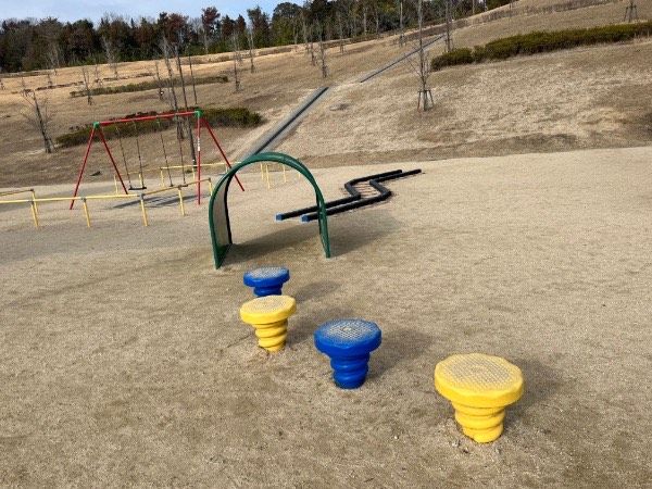 その他にも多目的広場では、ボール遊び、フリスビー、縄跳びなどをして楽しめ、芝生広場では休憩や団らん、軽い運動など、のびのびと動き回れる場所もあります。 近くにトイレもあり、おむつ交換台も設置されています。