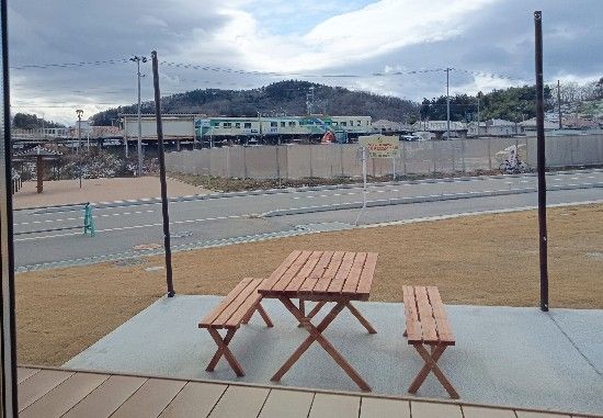 外が眺められる席に座ったら↑阿武隈急行の高子駅。電車が見えました。