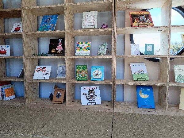 レストランがある建物の外に畳敷きの小さなスペースがありました。こちらはTATAMI BOOXというそうです。絵本があるのがわかりますか⁈
