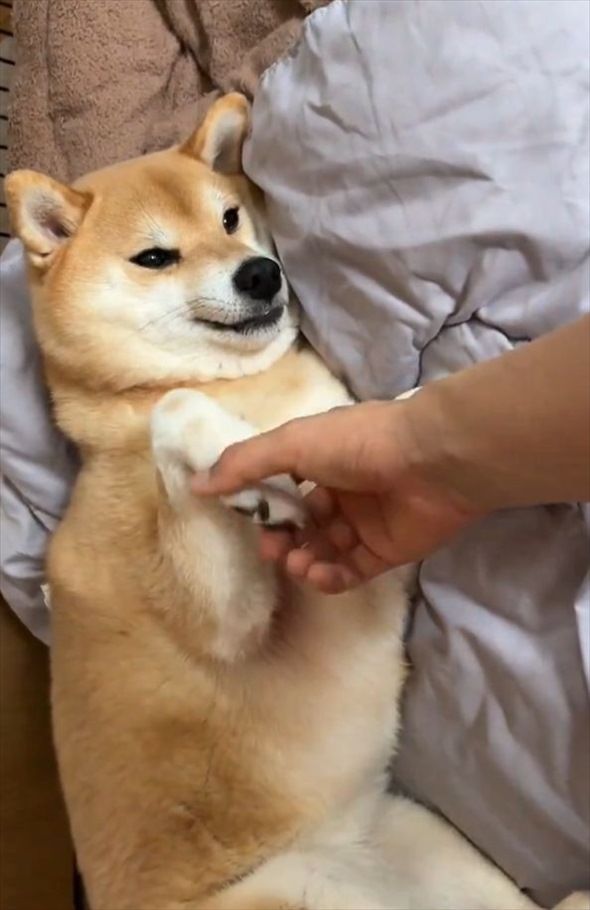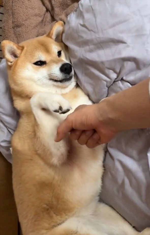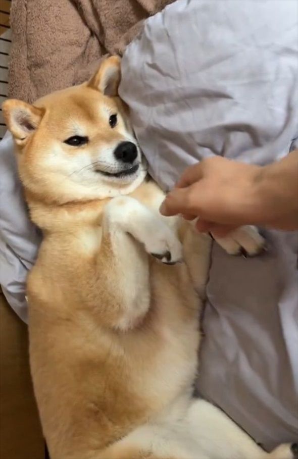 愛犬とスキンシップをしたい飼い主さん。 柴犬のおててを握ろうと手を伸ばすのですが・・・、まさかのリアクションが返ってきました!!