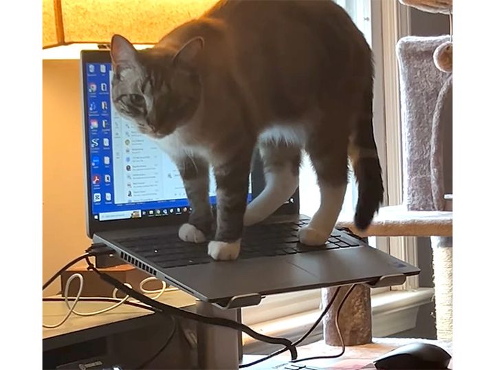 スタンドの上に置いたって無駄! 猫さんのPCへの好奇心は止まらない。