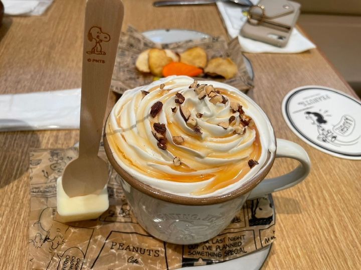 スヌーピーやウッドストックなどのキャラクターにちなんだデザートやドリンクメニューが楽しめます💛🖤