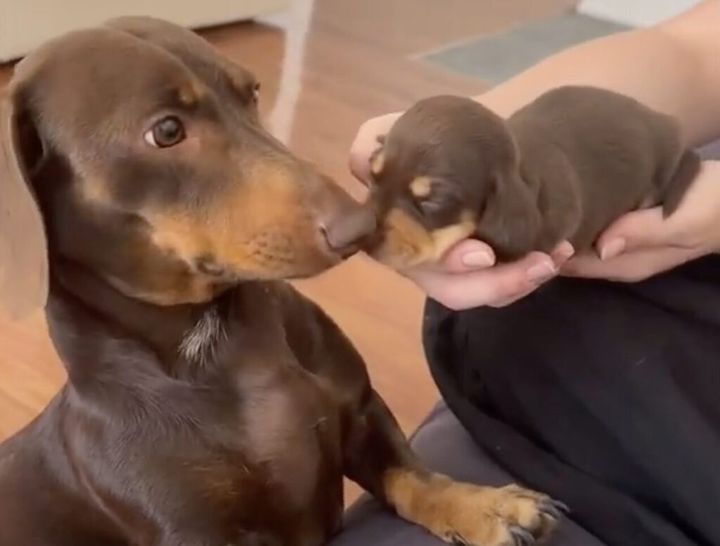 僕の子なの? 子犬との初対面に戸惑うパパさん。