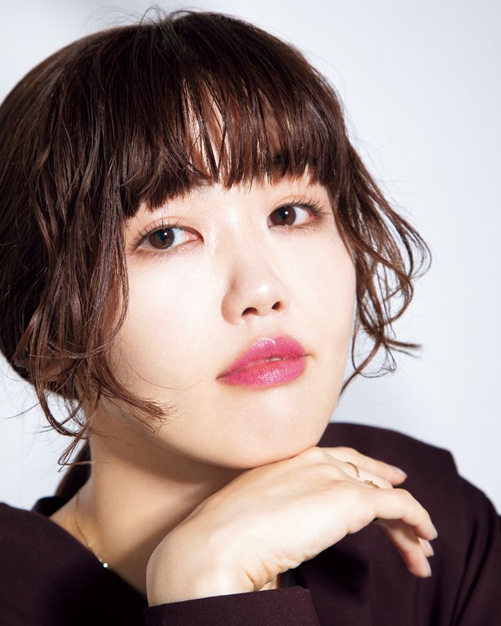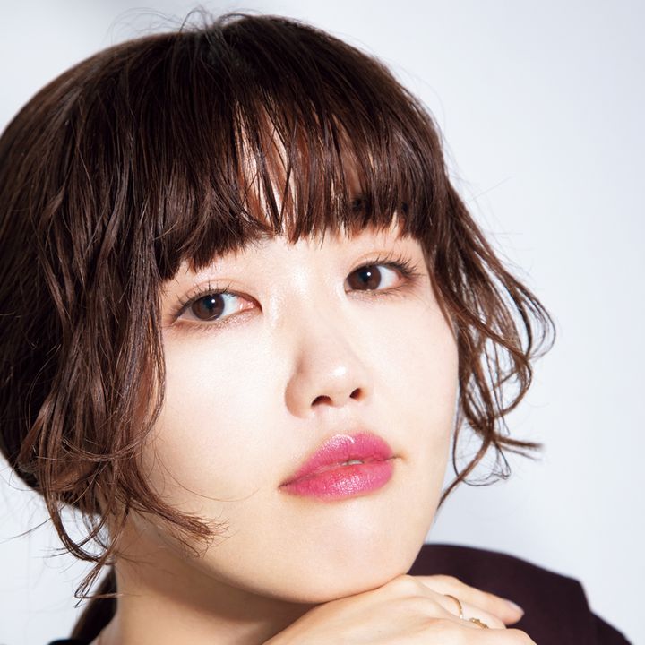 「ぱぱっとリップだけ塗って出た、というような雰囲気のメイクが個人的に好み。なので、肌はなるべくナチュラルに、目元もカラーレスで仕上げつつ、モード感があり、肌が綺麗に見える青みが強いピンクのリップをポイントにしました」