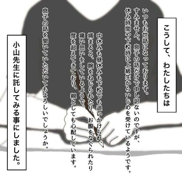 その後、愛すべき宇宙人さんは夫や長女、そして担任の先生と話し合いながら、息子と一緒にトラブルを解決していきます。ただ「どこから親が介入するか」「どこまでどんな方法でかかわるか」については愛すべき宇宙人さんもとても悩んでいました。