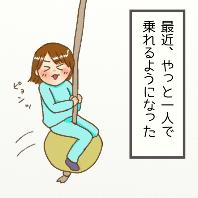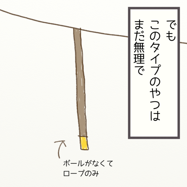 ターザンロープがある公園に行ったら必ず遊ぶ長女ですが、ボールがついていないタイプの物に関してはまだ1人で乗れません。
