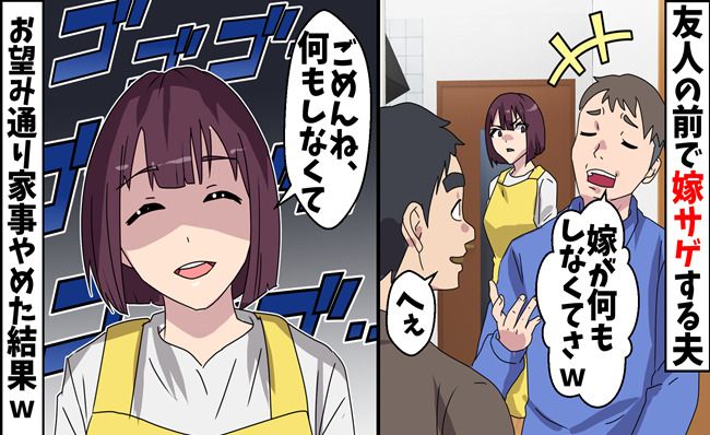 「ウチの嫁、何もしなくてさ~」嘘をついて嫁サゲする夫⇒妻が本当に家事をさぼった結果?!
