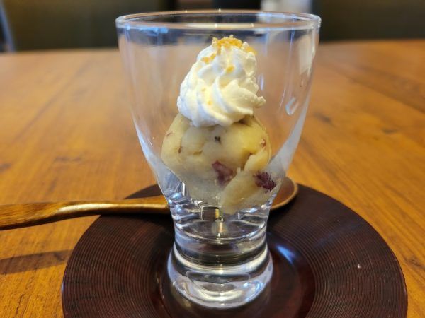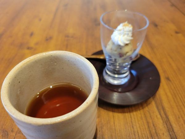 ちっちゃなデザートは、さつま芋をダイレクトに感じることが出来るスイートポテトの上にホイップクリームが乗っています。自然の甘さをお洒落に味わうことが出来ますね。ほうじ茶がほっこりします!ゆったりとゆっくりとタニロクで、素敵なランチタイムを味わうことが出来ました。