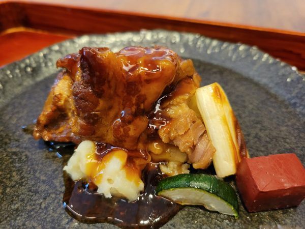 豚の角煮 TA+26=スタイル お洒落な豚の角煮ですね。もう、ぶるんぶるんのぷるぷるぷるです。お箸で切れるやわらかさです!角煮の下には、スパイシーなマッシュポテトが敷いてあります。これもまたおいしいです。