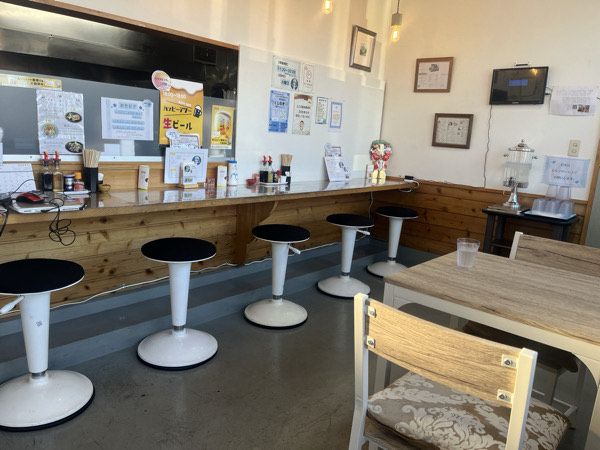 カウンター席とテーブル席がひとつ。オープンして数か月ということもあり、明るい雰囲気で綺麗でした。女性ひとりでも気楽に入れそう。