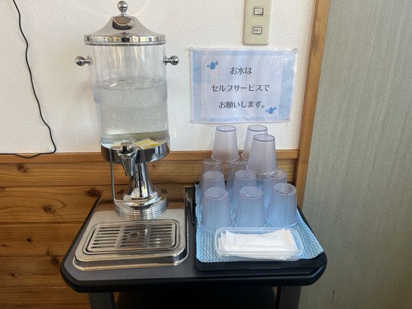 お水はセルフサービスです。注文は席まで取りに来てくれました。
