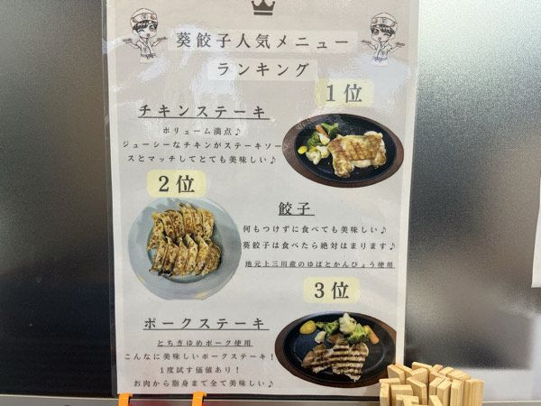 3. 【開店・上三川町】ゆばとかんぴょう入りの餃子・国産ステーキまでも楽しめる「葵餃子」
