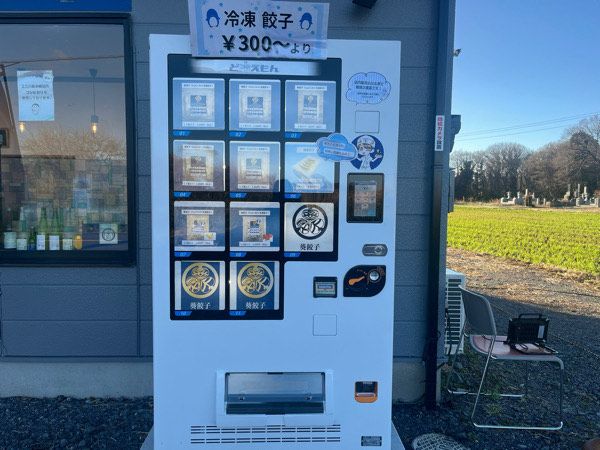お店の前には自動販売機が設置。イチオシの葵餃子(にんにく入りorなし)、チョコバナナやチョコいちご餃子を販売しています。営業時間以外でも購入できるのは嬉しいですね。