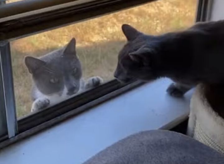 窓越しにひょっこり顔を出して
