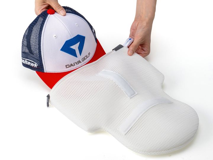 そんな声に答えてできたのがこの商品で、ゴルフウェアと同じように自宅の洗濯機で洗えるよう開発されたのだとか。確かにゴルフキャップ専用の「洗濯ネット」というのは、まさに「ありそうでなかった!」商品ですよね。