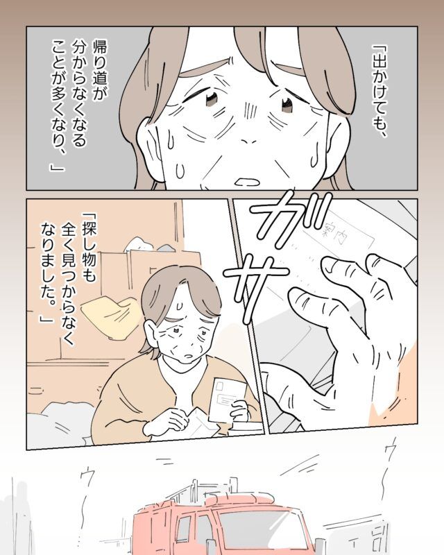 出かけても、帰り道がわからなくなることが多くなり、探し物も全く見つからなくなりました。