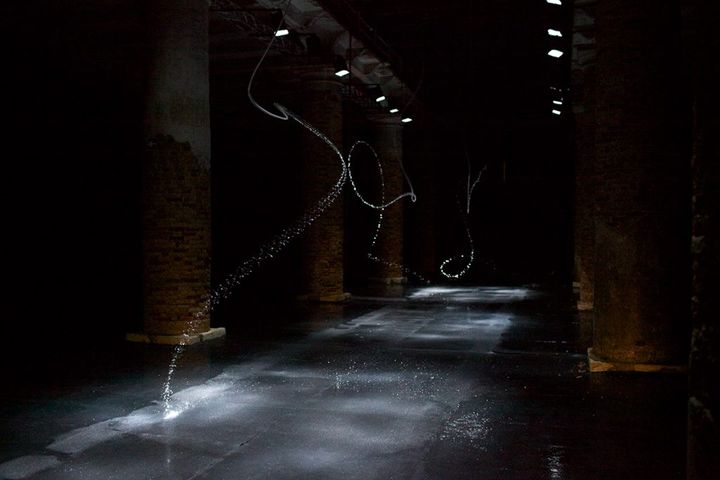 本展では、麻布台ヒルズの開業にあわせて制作された新作のパブリックアート《相互に繋がりあう瞬間が協和する周期》で取り組んだ主題を軸に、新作インスタレーションや水彩絵画、ドローイング、立体作品を通し、線や振る舞い、動きなどのモチーフを探究。光と水を使った大型インスタレーション《瞬間の家》のほか、本展のために制作された新作《呼吸のための空気》など、日本初展示作品15点が紹介されます。