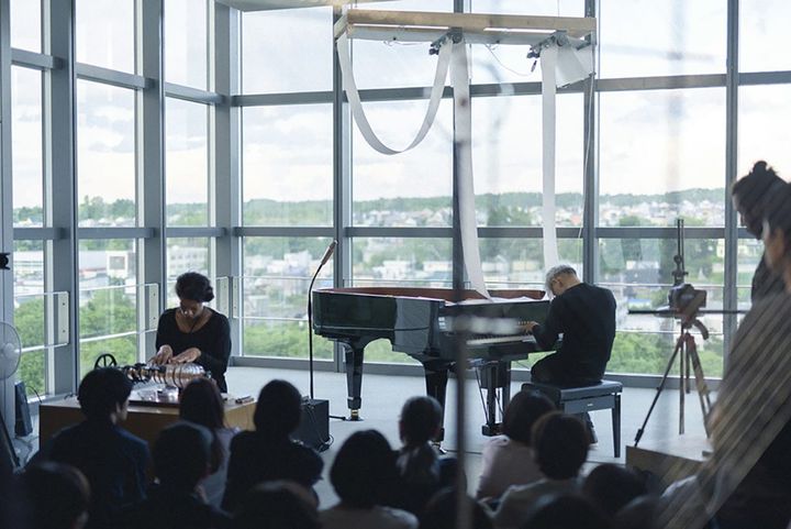 毛利悠子《そよぎ またはエコー》 2017年(部分)「札幌国際芸術祭 2017」特別イベント 「After the Echo」での演奏風景 写真:佐々木育弥