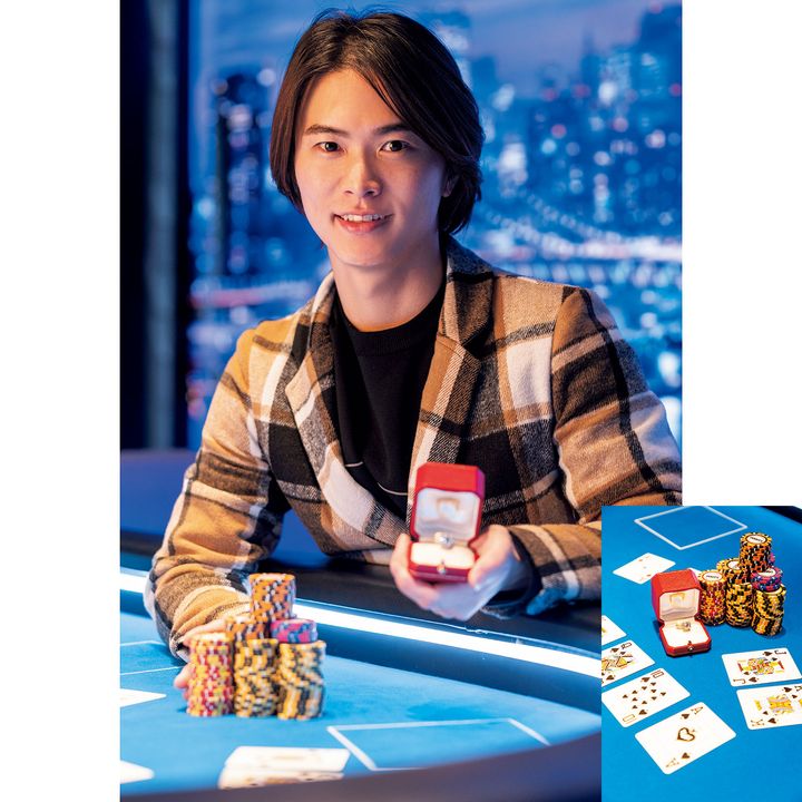 プロポーズって特別で、奇跡のような瞬間だと思うんです。そんな瞬間に、彼女との永遠の誓いをたてられたなら最高に幸せですよね。僕は彼女とは共通の趣味を持って、一緒に楽しみたいタイプ。休日はプライベートサウナで整った後にディナーを楽しみ、アミューズメントカジノで仲間と合流後ポーカーゲームに興じたいですね。そこでみんなにサクラになってもらい彼女に良いカードが回るようにして、ポーカーでも奇跡の手札と言われているロイヤルストレートフラッシュをプレゼントしたいな。そして彼女が大喜びしている時に、僕の中のロイヤルストレートフラッシュである婚約指輪を差し出したいです。奇跡って起こすものですよね。彼女と二人、奇跡の二乗から生まれる幸福を、みんなに囲まれて祝福されたいです。