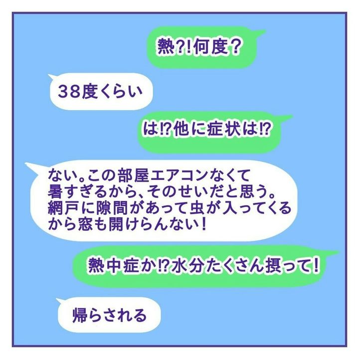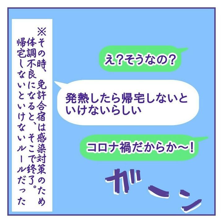 例に漏れず、運転免許の合宿でも熱が出てしまった長男。急遽帰宅することになり、ひよっこさんは動揺が隠せません。