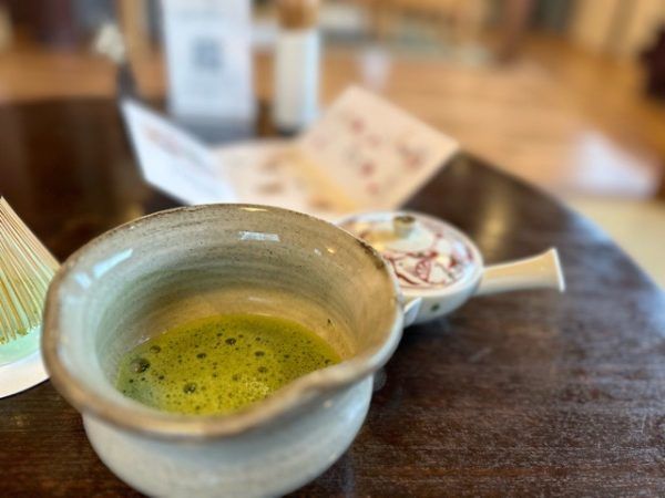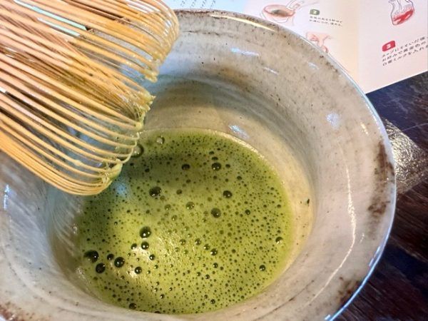 付属の茶筅でしっかり抹茶を切るように泡立てます。茶碗のフチをくるくるするのではなく、卵の白身を切るような感じで左右に振るとよさそうでした!熱いうちにしっかりと泡立てるのが抹茶の粉をしっかり溶かすコツのようです。