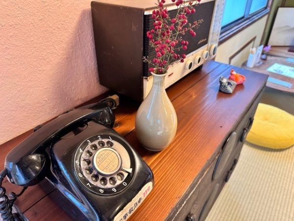 懐かしっっ!!黒電話(^▽^)/子供の頃、家の電話はこれでした(笑)思わず受話器を取って「ジーゴロゴロ」と番号を回してしまいそうでしたw平成に入ってからプッシュホンの電話に変わりましたが、この電話の隣に電話帳があって・・・って思い出しすぎて次に進めませんwww電話やラジオの他にもレトロ感を感じられるアイテムがたくさんあるので、是非実際に見てみてほしい!