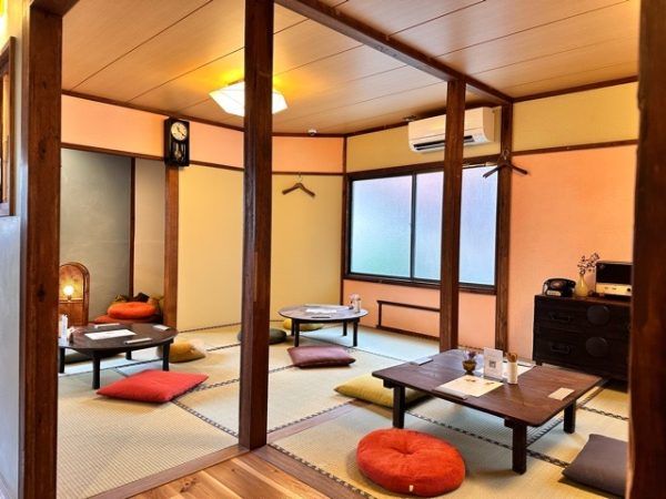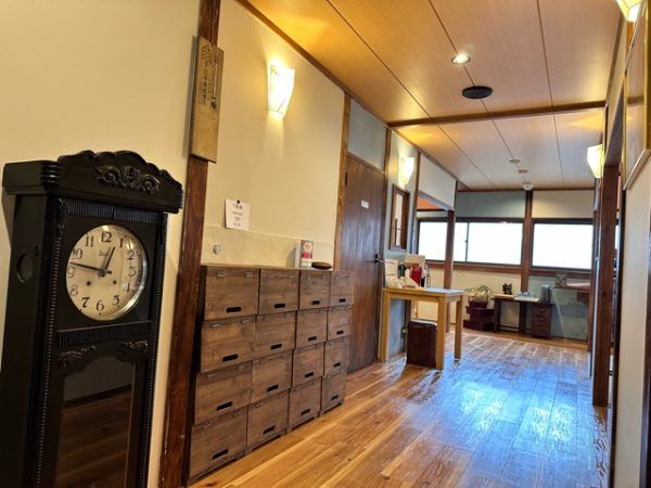 カフェスペースは低めの天井と畳とちゃぶ台、昭和の時代にタイムスリップしたかのような雰囲気です。柱時計も40代のわたしには子供の頃に見た懐かしい雰囲気です。