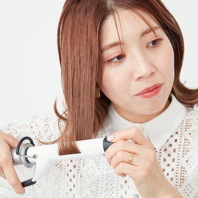 全体を巻かず、毛先だけ外ハネにすればOK。これだけでニュアンスのあるアレンジに。