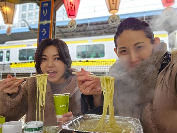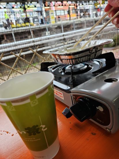 ホームで「いい茶こ」を飲んだり、ちゃんぽん麺をグツグツ煮ているのが不思議な感覚でした。