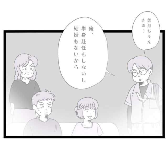 それでカズヤさんはあの夜、単身赴任も結婚もないとハッキリと美月さんに伝えたのでした。