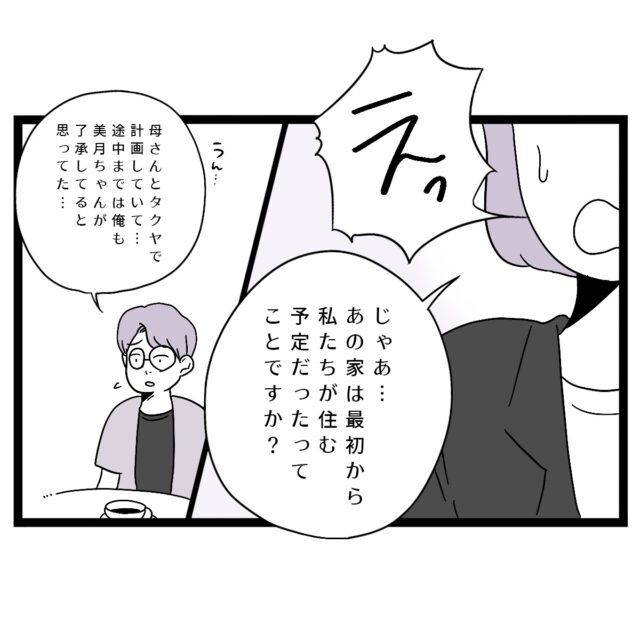 翌日カフェで待ち合わせた美月さんとカズヤさん、合鍵を返してくれた後で「母さんが本当にごめん!タクヤもだらしなくて申し訳ない・・」と謝るカズヤさん、その後、タクヤさんと義母が立てた計画についての話を聞くことに・・。