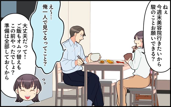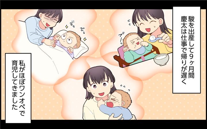 夫の仕事が繁忙期だったこともあり、主人公・千恵はこれまでワンオペで育児をしてきました。夫が育児に参加するのは休日のみ。しかし、千恵は春から仕事復帰。夫婦2人で力を合わせなければ乗り越えられないと、夫にも育児してもらおうと心に決めます。